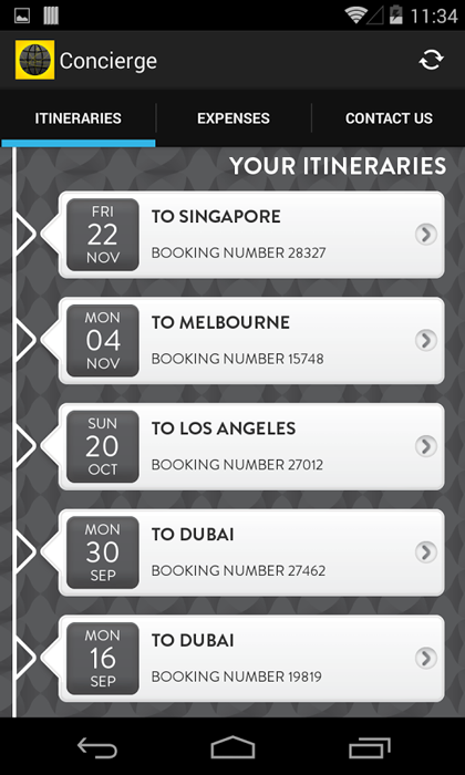 - Native mobile apps for iPhone and Android. Allows business travellers to view their itinerary history offline in one place and keep track of business expenses accordingly.