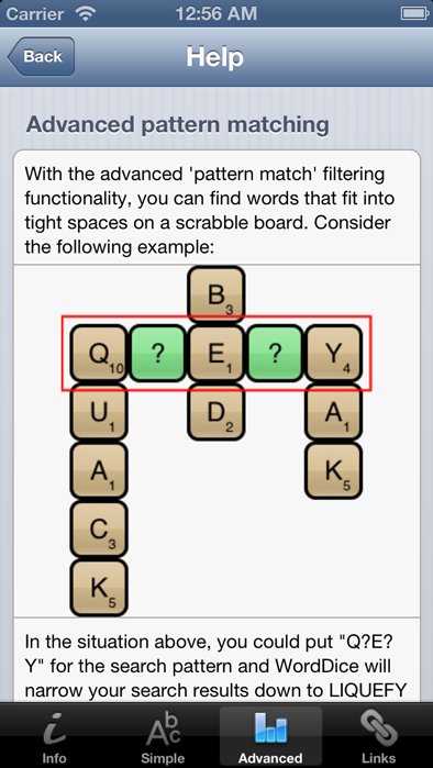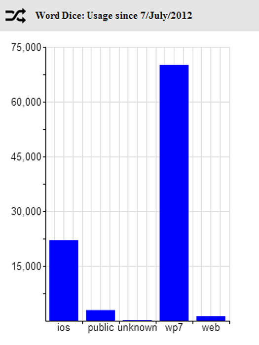 Word Dice was a helper tool for anyone who enjoys playing word games such as scrabble or boggle. Built up using a collection of websites and mobile applications for iOS and Windows Devices, Word Dive allowed for efficient searching and ranking of words and patterns in almost any word game. I also built a custom usage tracker before going live to monitor usage. These are no longer available for download.